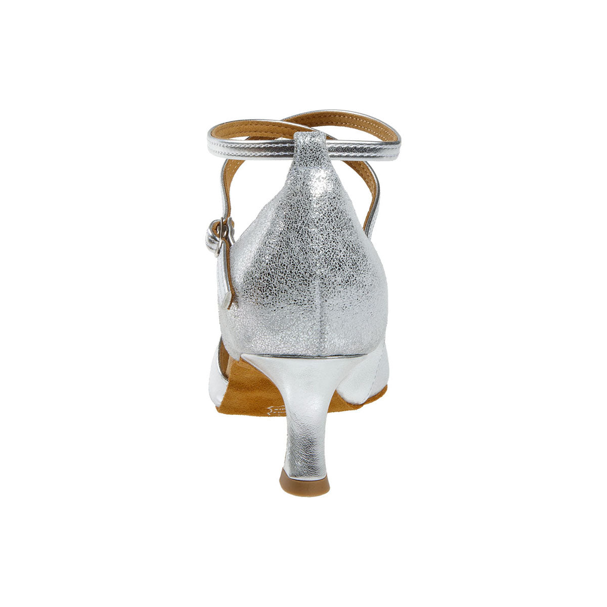 Produktbeschreibung: Diamant Damen Latein Tanzschuhe Made in Germany handgefertigt mit einem Vorderblatt aus zwei übereinander liegenden Flügeln die sich dem Fuß anpassen. Die zehenoffene Sandalette wird mit einer stufenlos einstellbaren Druckknopfschnalle zum schnellen Öffnen und Schließen an einem überkreuzenden Fersenriemchen gefertigt. Dieser Tanzschuh wird in der Weite F (Normalweite) mit einem eleganten 5 cm Flare Absatz hergestellt. Als Innenauskleidung wird ein atmungsaktives und Feuchtigkeit absorbierendes Microfaser aus italienischer Premium-Herstellung eingearbeitet. Für die Obermaterialien aus silber Synthetik kombiniert mit Veloursleder silber antik werden weiche Leder und Synthetikmaterialien höchster Qualität aus Italien verwendet.