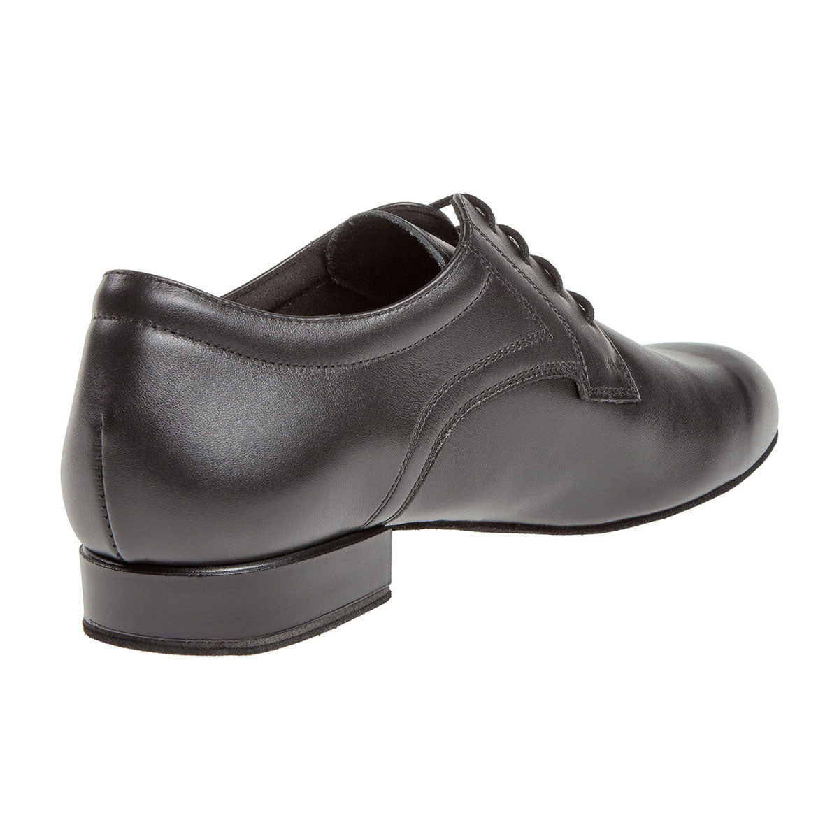 Herren Tanzschuhe Made in Germany handgefertigt in klassischer Plain Derby Ausführung mit offener 4-Loch Schnürung und gepolstertem Schaftrand. Dieser Tanzschuh wird in der Weite K (extra breite Füße) mit einem Schock absorbierenden 2 cm Standard Absatz hergestellt. Als Innenauskleidung wird ein atmungsaktives und Feuchtigkeit absorbierendes Microfaser aus italienischer Premium-Herstellung eingearbeitet. Für das Obermaterial aus schwarzem Echtleder wird ein hochwertiges Rindnappa aus Italien verwendet.