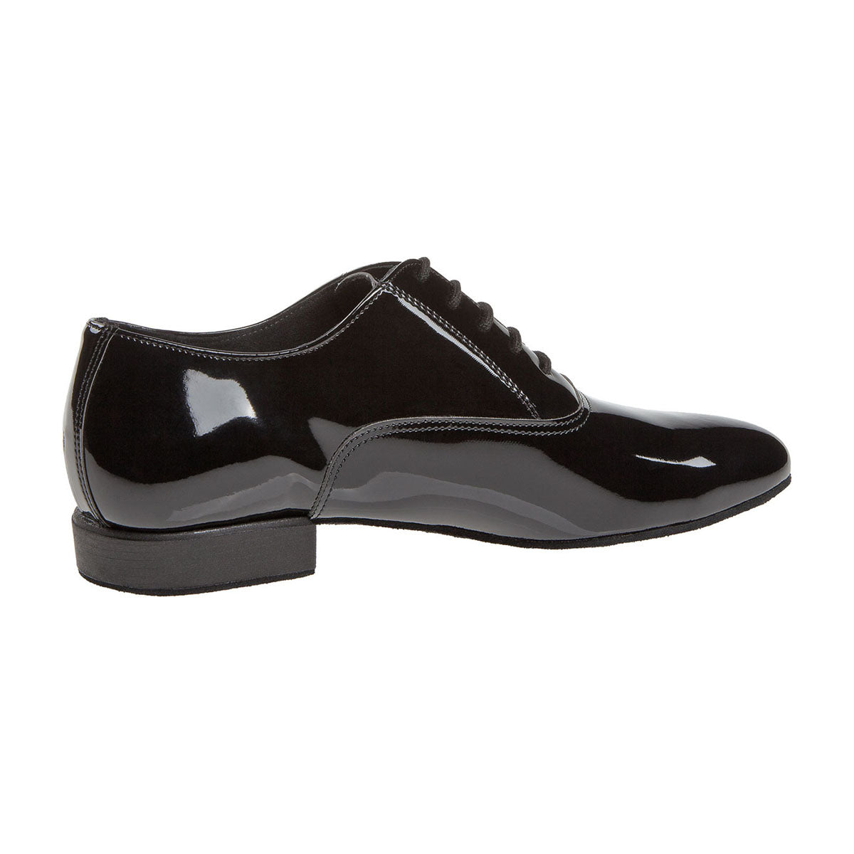 Produktbeschreibung: Diamant Herren Tanzschuhe Made in Germany handgefertigt in klassischer Plain Oxford Ausführung mit geschlossener 5-Loch Schnürung. Dieser Tanzschuh wird in der Weite G (Normalweite) mit einem Schock absorbierenden 2 cm Standard Absatz hergestellt. Als Innenauskleidung wird ein atmungsaktives und Feuchtigkeit absorbierendes Microfaser aus italienischer Premium-Herstellung eingearbeitet. Für das Obermaterial aus Lack schwarz wird ein hochwertiges Material aus Italien verwendet.