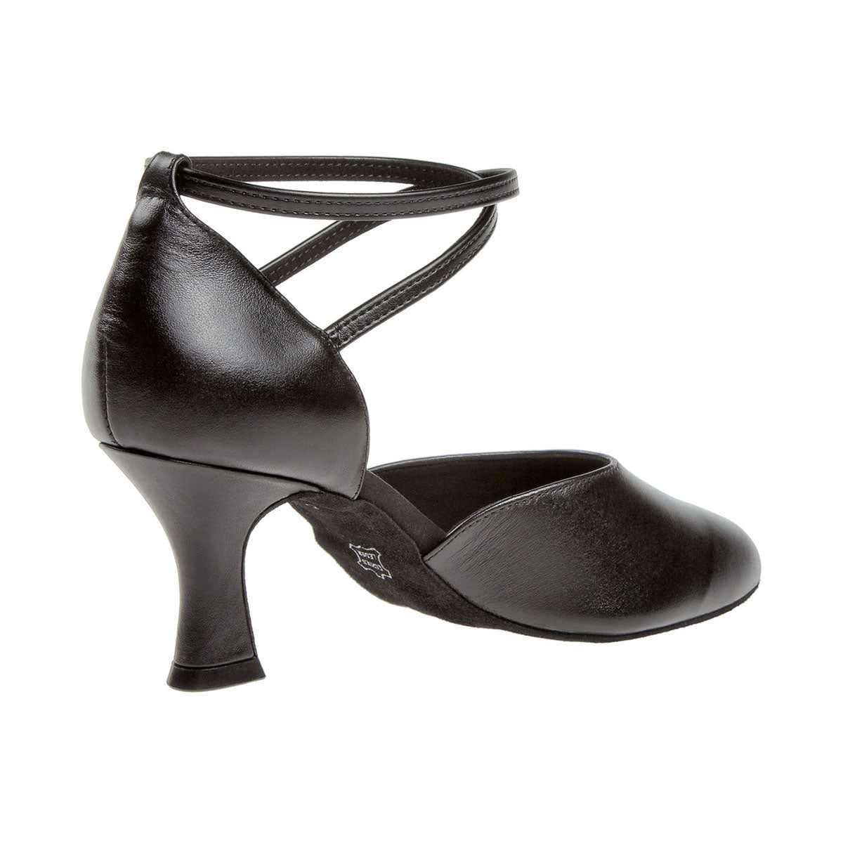 Produktbeschreibung: Damen Tanzschuhe Made in Germany handgefertigt in klassischer Ausführung mit Rundausschnitt. Der zehengeschlossene Pumps wird mit einer stufenlos einstellbaren Druckknopfschnalle zum schnellen Öffnen und Schließen gefertigt. Dieser Tanzschuh wird in der Weite E1/2 (Normalweite) mit einem 6,5 cm Latino Absatz hergestellt. Als Innenauskleidung wird ein atmungsaktives und Feuchtigkeit absorbierendes Microfaser aus italienischer Premium-Herstellung eingearbeitet. Für das Obermaterial aus schwarzem Echtleder wird ein hochwertiges Rindnappa aus Italien verwendet.