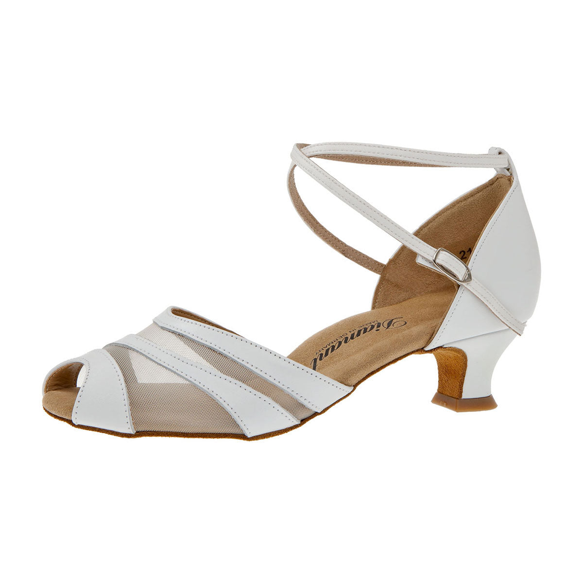 Produktbeschreibung: Damen Tanzschuhe / Brautschuhe Made in Germany handgefertigt mit einem röhrenförmigen Vorderblatt und Halt gebendem Gewebe, das sich dem Fuß anpasst. Die zehenoffene Sandalette wird mit einer stufenlos einstellbaren Druckknopfschnalle zum schnellen Öffnen und Schließen an einem überkreuzenden Fersenriemchen gefertigt. Dieser Tanzschuh wird in der Weite F (Normalweite) mit Diamant Comfort Fußbett und einem standfesten 4,2 cm Spanish Absatz mit großer Auftrittsfläche hergestellt. Als Innenauskleidung wird ein atmungsaktives und Feuchtigkeit absorbierendes Microfaser aus italienischer Premium-Herstellung eingearbeitet. Für das Obermaterial wird ein hochwertiges Rindnappa aus Italien verwendet.