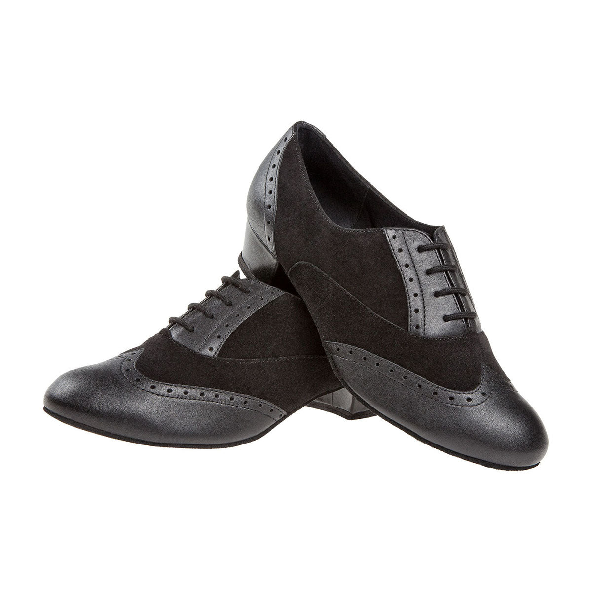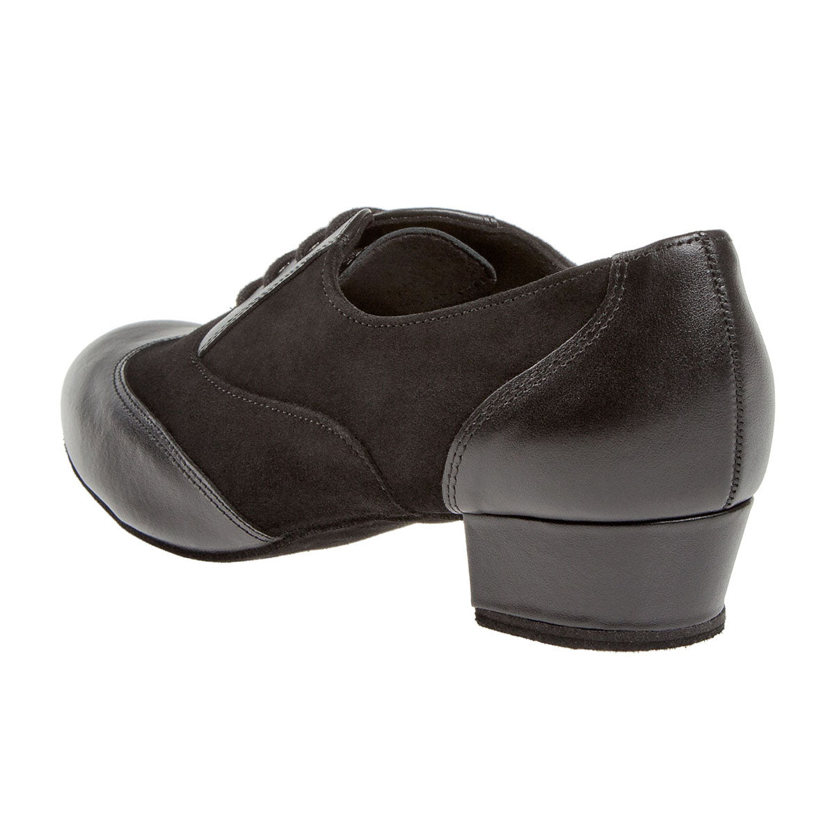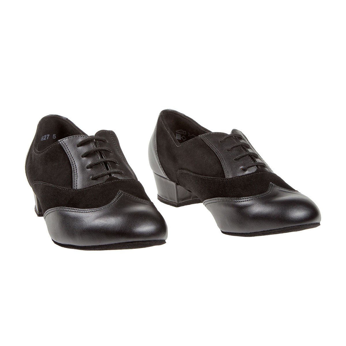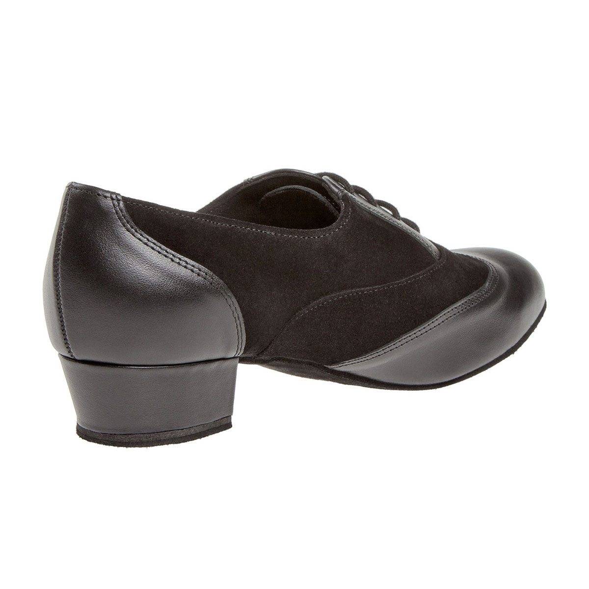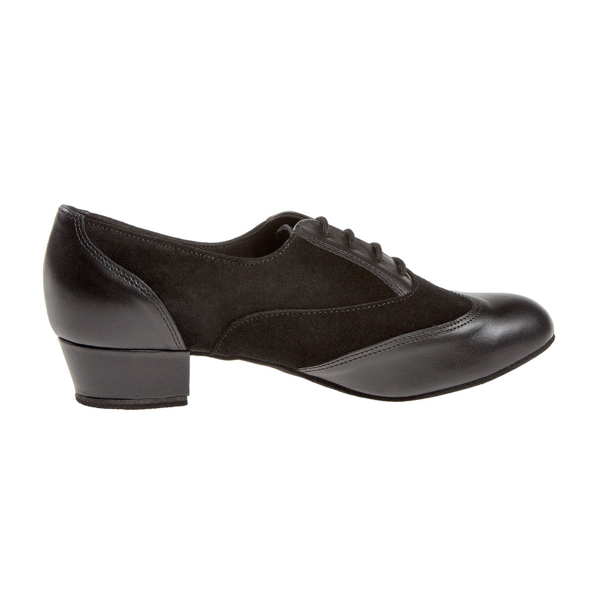 Produktbeschreibung: Damen Trainer Tanzschuhe Made in Germany handgefertigt mit Flügelkappe und Schnürung. Der geschlossene Schnürschuh wird mit einer 4-Loch Schnürung gefertigt. Dieser Tanzschuh mit runder Vorderkappe wird in der Weite F (Normalweite) mit Diamant Comfort Fußbett und einem standfesten 2,8 cm Block Absatz mit sehr großer Auftrittsfläche hergestellt. Als Innenauskleidung wird ein atmungsaktives und Feuchtigkeit absorbierendes Microfaser aus italienischer Premium-Herstellung eingearbeitet. Für die Obermaterialien aus schwarzem Nappaleder kombiniert mit schwarzem Veloursleder werden weiche Leder höchster Qualität verwendet.