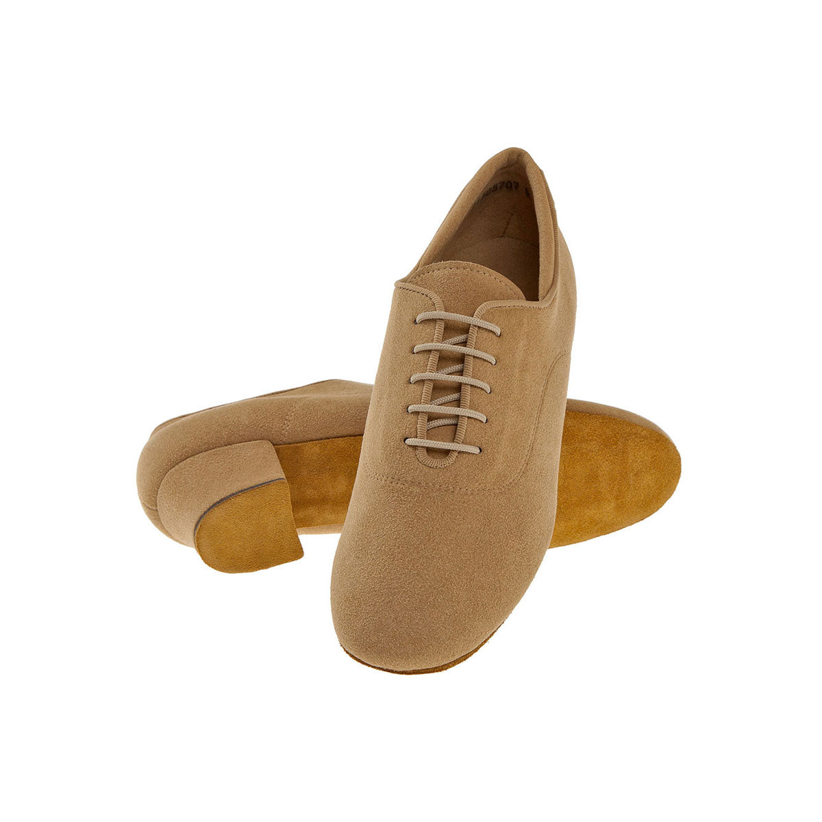 Laufsohlen aus echtem Rauleder ermöglichen ein optimales Drehen und Gleiten auf der Tanzfläche aber gewähren gleichzeitig den benötigten Grip. Verschmutzte Sohlen reinigt man am besten mit einer Aufraubürste für Tanzschuhe.