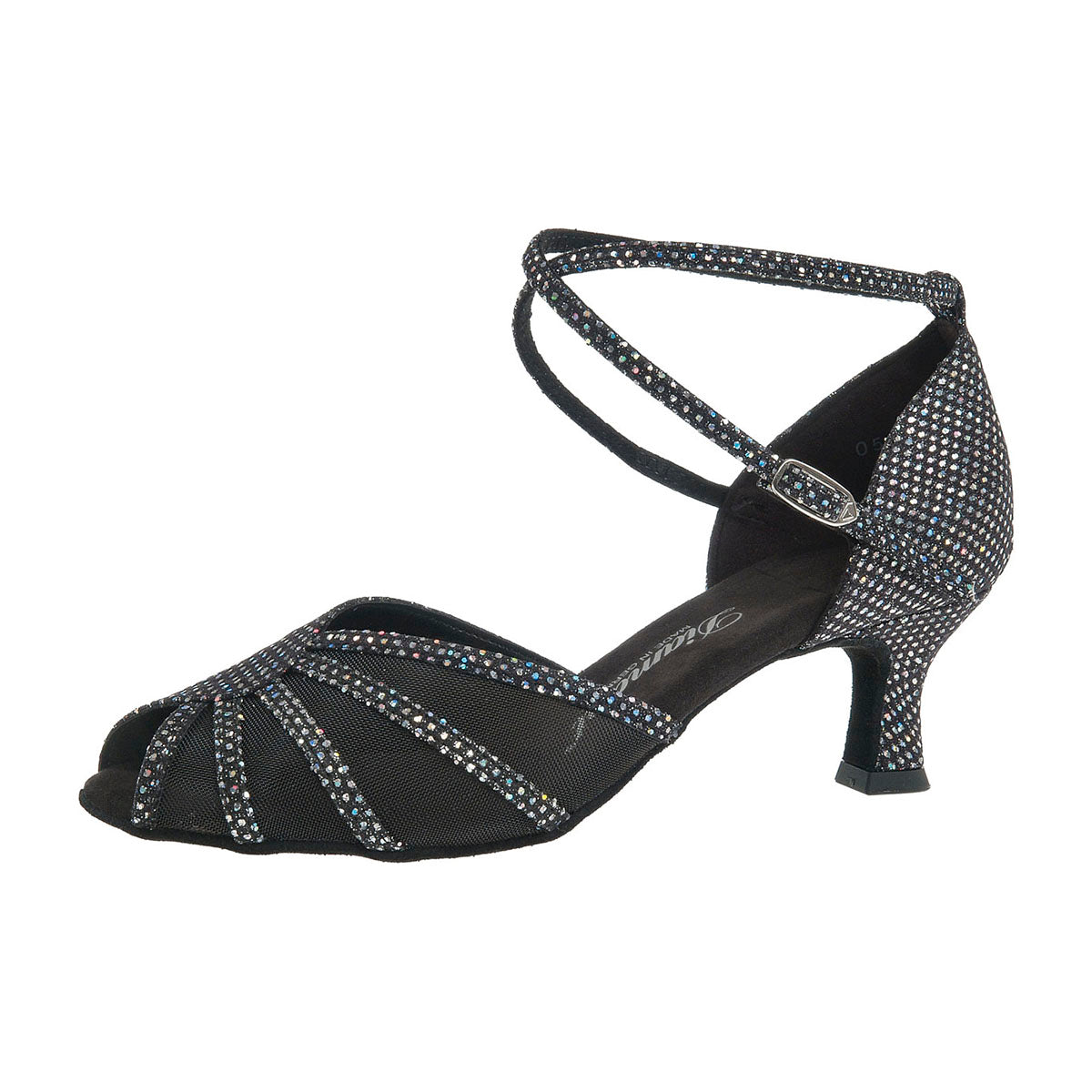 Produktbeschreibung: Diamant Damen Latein Tanzschuhe Made in Germany handgefertigt mit 5 Riemchen auf der Außenseite. Die zehenoffene Sandalette wird mit einer stufenlos einstellbaren Druckknopfschnalle zum schnellen Öffnen und Schließen an einem überkreuzenden Fersenriemchen gefertigt. Dieser Tanzschuh wird in der Weite F (Normalweite) mit einem eleganten 5 cm Flare Absatz hergestellt. Als Innenauskleidung wird ein atmungsaktives und Feuchtigkeit absorbierendes Microfaser aus italienischer Premium-Herstellung eingearbeitet. für das Obermaterial wird ein hochwertiger Stoff besetzt mit funkelnden Pailletten aus England verwendet.
