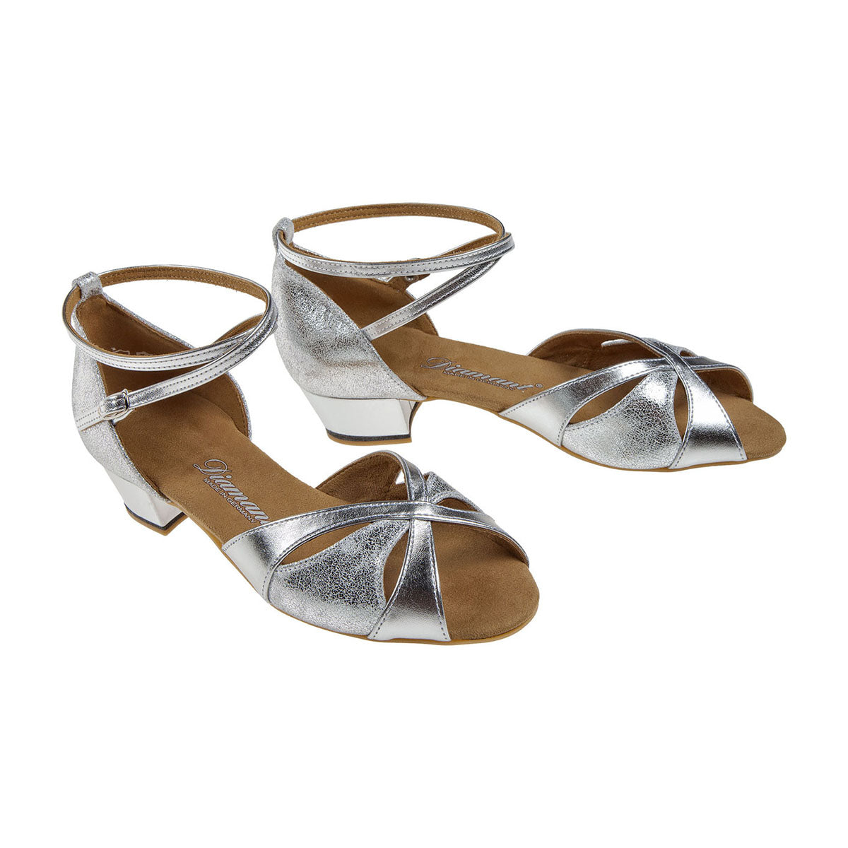 Produktbeschreibung: Diamant Damen Latein Tanzschuhe Made in Germany handgefertigt mit einem Vorderblatt aus drei übereinander liegenden Flügeln die sich dem Fuß anpassen. Die zehenoffene Sandalette wird mit einer stufenlos einstellbaren Druckknopfschnalle zum schnellen Öffnen und Schließen an einem überkreuzenden Fersenriemchen gefertigt. Dieser Tanzschuh mit runder Vorderkappe wird in der Weite F (Normalweite) mit einem standfesten 2,8 cm Blockabsatz mit sehr großer Auftrittsfläche hergestellt. Als Innenauskleidung wird ein atmungsaktives und Feuchtigkeit absorbierendes Microfaser aus italienischer Premium-Herstellung eingearbeitet. für die Obermaterialien aus Kunstleder silber kombiniert mit Velourleder silber antik werden weiche Leder- und Synthetikmaterialien von höchster Qualität aus Italien verwendet.