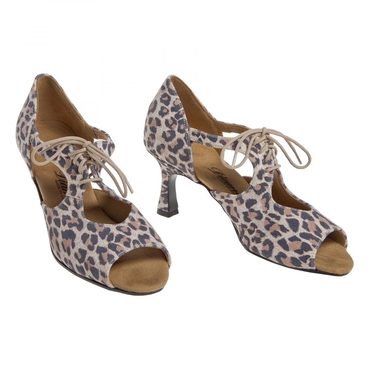 Produktbeschreibung: Diamant Damen Salsa/Tango/Latein Tanzschuhe Made in Germany handgefertigt mit einer 4-Loch Schnüung. Die zehenoffene Sandalette sitzt sicher am Fuß und gibt viel Halt. Dieser Tanzschuh wird in der Weite F (Normalweite) mit einem eleganten 6,5 cm Flare Absatz hergestellt. Als Innenauskleidung wird ein atmungsaktives und Feuchtigkeit absorbierendes Microfaser aus italienischer Premium-Herstellung eingearbeitet. für das Obermaterial aus Velourleder in Leoparden-Optik wird ein weiches Velourleder mit edlem Leopard Aufdruck aus Italien verwendet.