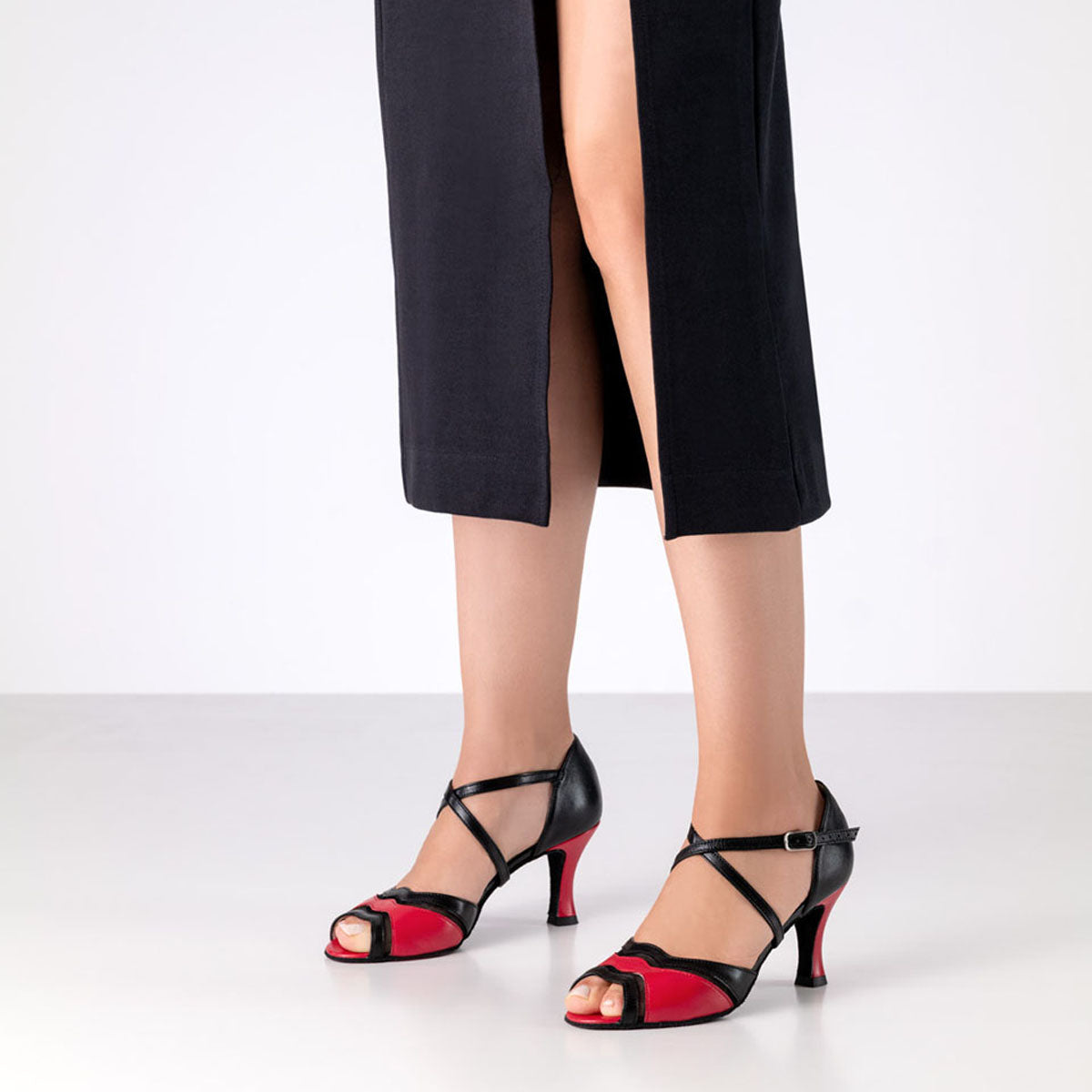 Produktbeschreibung: Mit unserem Tanzschuh Portia gleiten Sie stilvoll und komfortabel über die Tanzfläche. Das Modell vereint hochwertiges schwarzes und rotes Nappaleder zu einem ausdrucksstarken, modernen Look. Die kraftvolle Zweifarbigkeit betont die Form des Schuhs und sorgt für eine edle Optik. Feines Mesh-Material im Seitenbereich sorgt für zusätzlichen Halt und lässt den Fuß atmen ideal für lange Tanzabende.
